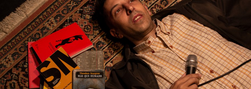 Fue una premisa posible, que fue ganando cuerpo en los ensayos. Al principio, el tipo ve videos de ella y se compra un micrófono para cantar. Luego lo hace a capela. Terminó cobrando otros significados gracias a la magia del teatro; fuimos encontrando otras capas posible, como el micrófono como un espacio de pensamiento. Y por momentos como si fuese la radio de la policía.