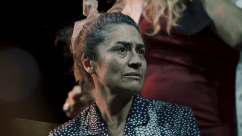 Es difícil de definir, porque lo que hicimos es una peli, pero también tiene un perfume muy teatral. Creo que tiene que ver con ese espacio de abstracción que propone el negro infinito del fondo, como un espacio indefinido en el que no se sabe si es dentro o fuera, o si es de día o de noche, y que, desde luego, nos recuerda a la caja negra del teatro.