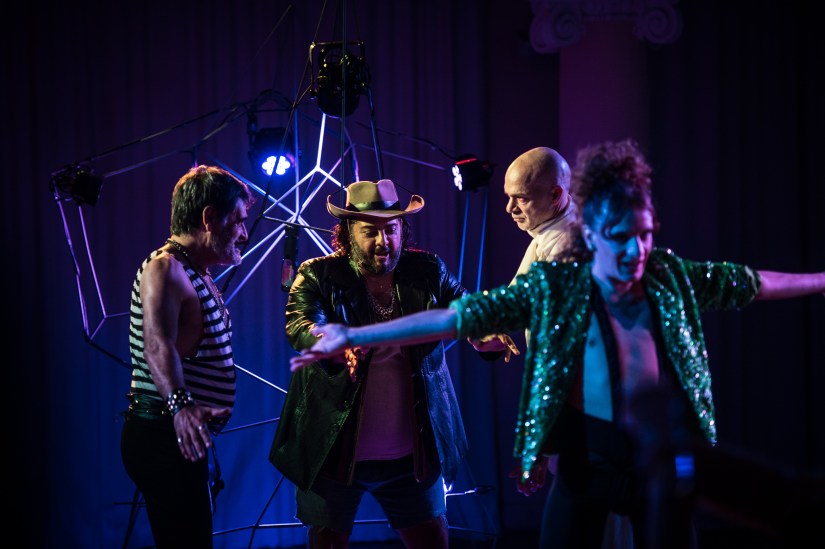 -Nos gusta decir que es una road theater, un invento que hicimos con esta obra rutera donde las pibas van pasando por diferentes espacios y tienen que resolver una serie de peripecias, sortear una serie de obstáculos. Era complicado escribir esto utilizando un lenguaje teatral y que no fuera meramente cinematográfico. Cuando escribo a mí me sirve dejar volar la imaginación, no me sirve pensar en el espacio escénico. No pienso en una sala en particular, no pienso una caja negra, no pienso en un espacio teatral, no lo pienso para un lugar determinado. Yo pienso en los espacios en donde la acción-ficción está sucediendo porque sino me cierra mucho. Después se verá cómo se resuelve. No quise ponerme en el lugar de pensar a priori cómo se resolvería escénicamente. Escribir para un determinado espacio te restringe ciertas cosas y te hace tomar ciertas decisiones a la hora de escribir porque sabes que lo tenés que montar en tal o cuál lugar. 600 caballos de fuerza es un poco una especie de homenaje, obviamente salvando las distancias y muy humilde, a películas como “Thelma y Louise”, “Profundo carmesí”, la saga de “Mad Max”. Siempre me fascinó mucho la aventura, cómo se llega de un punto a otro, cómo se resuelve o no un enigma, que a veces se hace todavía más grande y entonces te lleva a otro lugar. Para que la narración funcionara era importante encontrar una convención y esto fue una búsqueda, no salió así nomás. Encontré que el “espíritu caminero”, el espíritu del padre, al poder convivir con los dos mundos justamente me permitía narrar, contar un poco de contexto, adelantar algo de la historia, ubicar en tiempo y espacio… pero también incide en la acción dramática porque es parte de la misma.