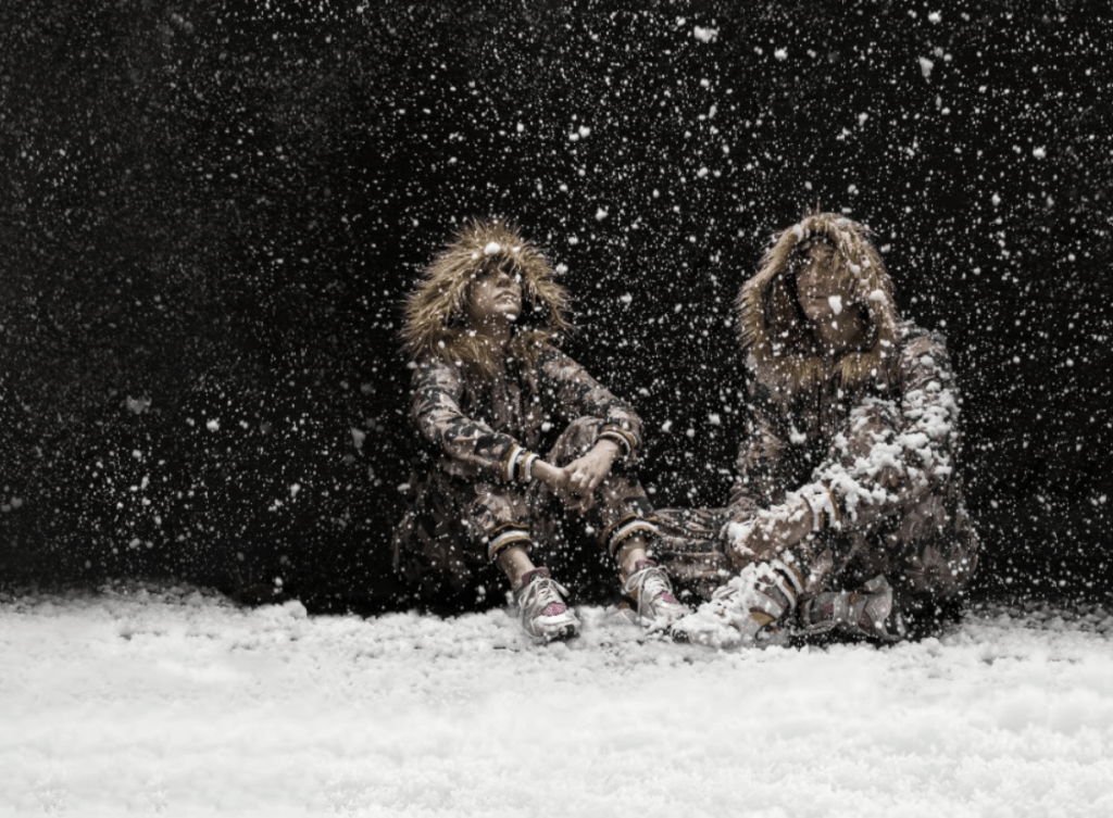La obra de Luciana Acuña y Luis Biasotto fue creada en distintas residencias en Ecuador, EEUU y La Plata. La primera versión fue en febrero de 2019 en Hamilton NY, lugar colmado de nieve para ese momento del año. La nieve es un fenómeno que no existe en Buenos Aires, por lo que toda la creación de Hielo negro estuvo teñida por este paisaje excepcional que fue, para sus creadores, de absoluta inspiración. Todo estaba dispuesto para que un nuevo imaginario se desplegara en la escena. La obra invita a entrar en dicho imaginario y al universo de dos creadores que se conocieron de memoria y que llevaron consigo muchísimos años de creación juntos y de amistad.
