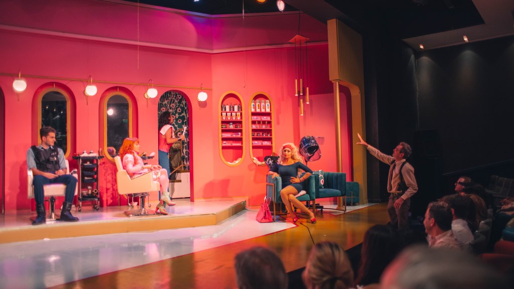 -Politti: Porque es una tragicomedia, donde ocurre un asesinato. La famosa pianista Isabel Pratt es misteriosamente asesinada en el departamento de arriba de la peluquería de Tony. Yo soy Barbie, la asistente, bastante especial, tengo mis cosas y mis ambiciones. También están los clientes que se convierten automáticamente en sospechosos. Hasta que aparece el inspector y su asistente. A partir de ahí, el público es quien tiene que decir quién fue el asesino por los movimientos que vio antes. Por lo tanto nosotros hemos ensayado varios finales porque no sabemos a quién va a elegir el público. Es muy divertido, pero es muy difícil porque en una semana puede ser que no te toque nunca ser el asesino, y a la otra sos todos los días. El que estaba muy enloquecido con traerla era Manuel González Gil que la había visto en Francia y en México. Tenía muchas ganas de hacerla acá.