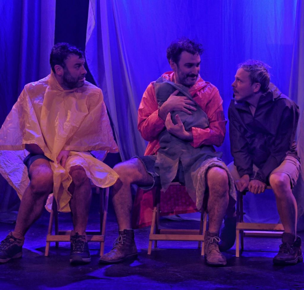 Como un ritual que se repite todos los años, tres amigos viajan a pescar. Esta vez un temporal extraordinario provocará que cada uno exponga su sensibilidad y experimente las contradicciones de la masculinidad y los preconceptos armados en relación con la paternidad. La propuesta estética indaga sobre la sutileza del Paraná. A través de varios telones livianos, transparentes y pardos, recreamos el río donde El Topo, Pingu y Cabeza se encuentran, como un ritual, todos los años a pescar. Estos 3 hombres, atrapados en sus mandatos masculinos, desprovistos de contención y posibilidad de deseo propio, irán entrando en un universo mágico. A través del espacio y la luz se busca explorar sobre lo fluido, liviano y suave; y desde los cuerpos de los actores lo rígido, duro, y pesado; este contrapunto despliega la porosidad de cada personaje, y hace foco en lo múltiple del género.