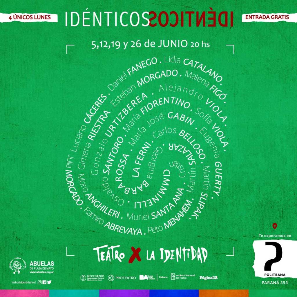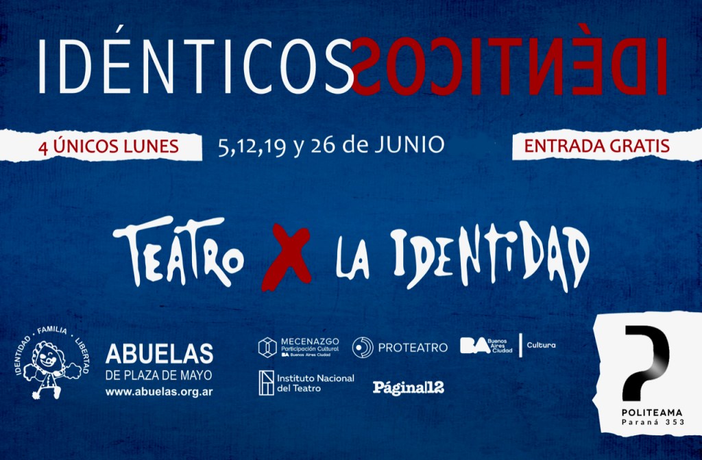 El ciclo organizado por Abuelas de Plaza de Mayo tendrá su nueva edición los lunes de junio en el Teatro Politeama, Paraná 353. Las entradas serán gratuitas y estarán participando Daniel Fanego, María Fiorentino Muriel Santa Ana, Ingrid Pelicori y Mariano Saba, entre otros actores, autores y directores.