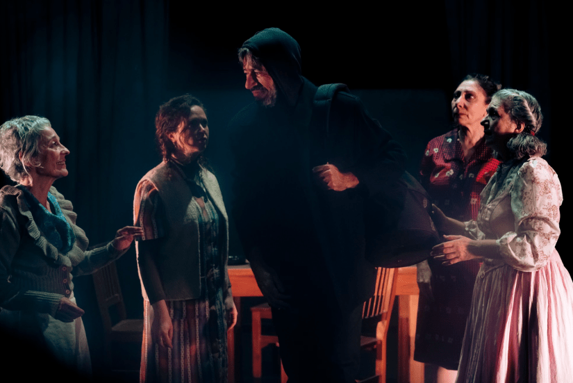 Madre e hija viven recluidas en un pueblo del sur regentando una pequeña pensión para viajeros de paso de la zona. La madre, en algún momento de su vida, había tomado la decisión de instalarse ahí escapando de acontecimientos oscuros a los que había sido expuesta en su pasado. Para la hija, en cambio, este pueblo es un lugar de hastío del cual sólo piensa en escapar. Para lograr este cometido necesita dinero, por lo cual decide, empujando con ella a su madre, empezar a robarles a los viajeros que se hospedan de manera circunstancial. Esta práctica se va intensificando, al punto, que algunas de sus víctimas llegan a ser asesinadas. En este marco es que llega Juan, quien, al nacer, había sido separado de su madre y criado por una familia rica en la ciudad. Cuarenta y cinco años después descubre esta realidad decidiendo ir al encuentro de su madre biológica y hermana. Con temor en torno a cómo develar su identidad, se aloja como un huésped más, esperando el momento oportuno para presentarse, aunque, antes, podría llegar a convertirse en la víctima perfecta. Esta obra plantea una lectura actual de un clásico cómo lo es ‘El malentendido’ de Albert Camus, en este caso a través de una adaptación libre realizada por Natalia Villamil. Presentada por El Balcón de Meursault, compañía del Teatro El Extranjero, en coproducción con el Centro Cultural San Martín y dirigida por Mariano Stolkiner con actuaciones de Marta Haller, Raquel Ameri, Leonardo Saggese, Antonella Costa y Pablo Rinaldi.