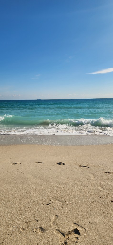 Veo huellas sobre la arena. Son huellas que parecen marcar un camino. Probablemente sean los pasos del arte, mi hijo y su mamá.