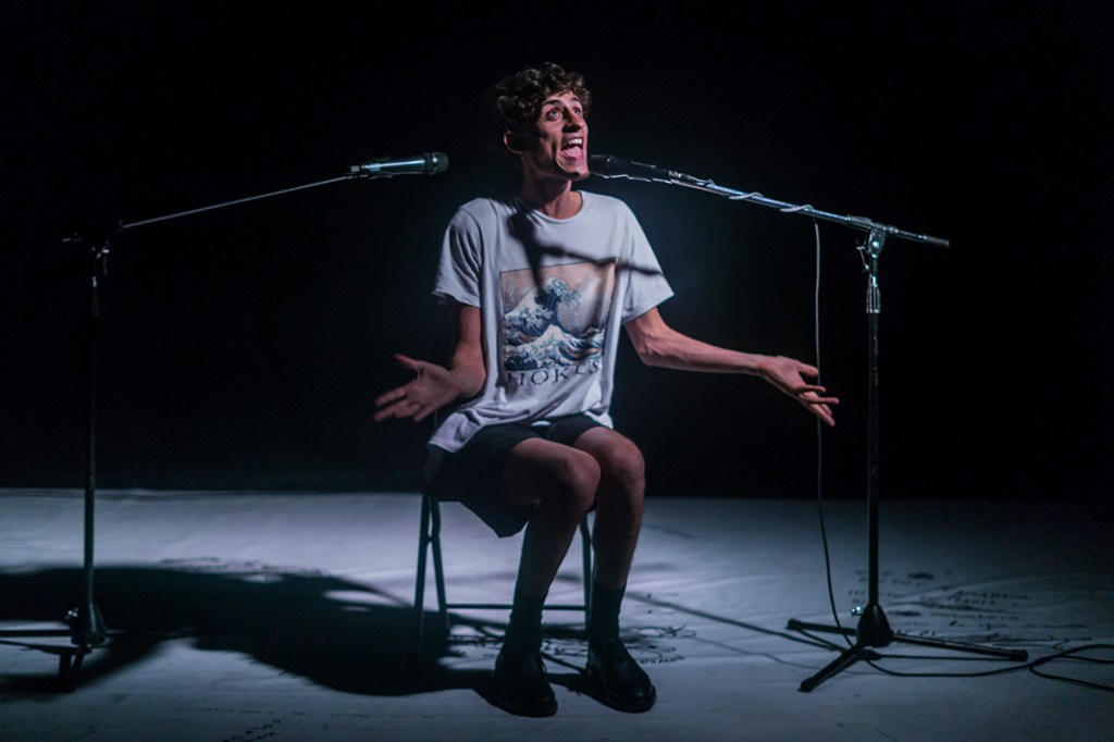Un personaje transformista; ni hombre ni mujer: voz que narra su propia invención. La promesa de un admirador que supuestamente va a escribir su biografía lo mantiene en pie, pero el pasado se vuelve presente y el presente está infectado por los recuerdos. En una relación casi erótica con el lenguaje, la realidad se ficcionaliza, se maquilla para bordear algo que no se puede nombrar: una verdad que duele. ‘Todo lo que nombro desaparece’ es una indagación sobre el monólogo como forma, la convención teatral y el problema de la soledad en escena. Escrita e interpretada por Hernán Lewkowicz.