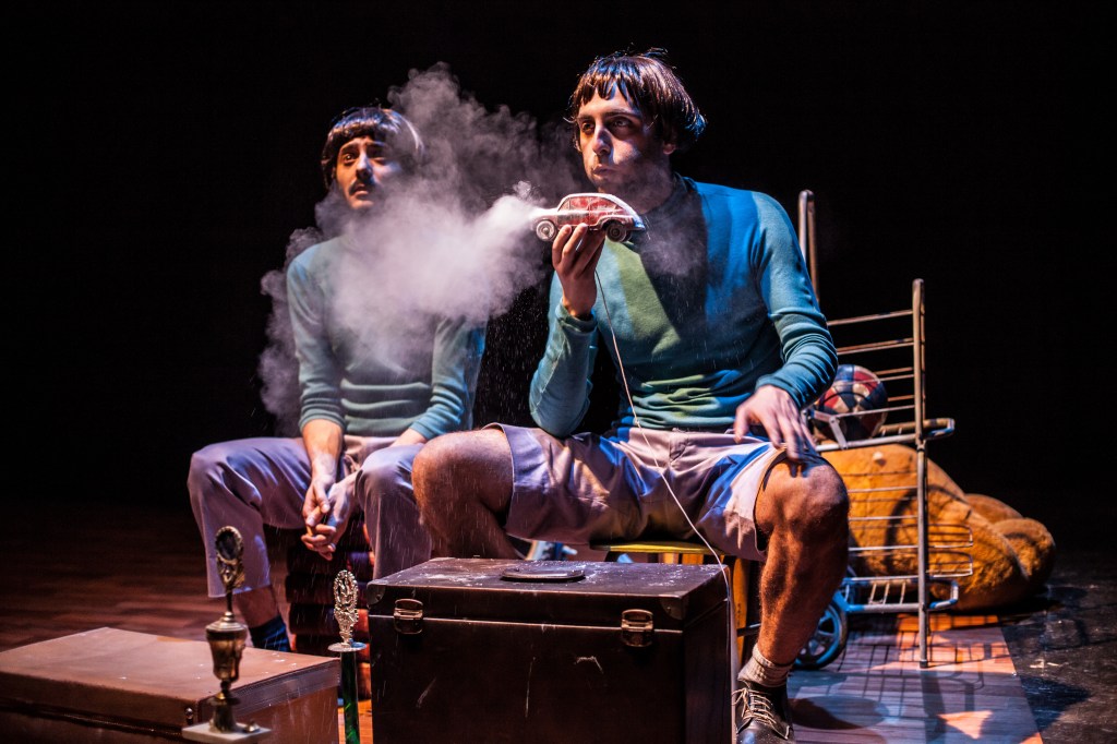 Dos pibes conversando, una mancha de humedad, un teléfono que suena, una caja llena de recuerdos, una guitarra y un poco más. Con ese combo, los Sutottos logran contar una historia hecha de retazos cotidianos, de miedos, obsesiones, fantasmas y bueyes perdidos que atrapa al público desde el primer instante. Se trata de Inestable, el espectáculo que el dúo formado por Gadiel Sztryk y Andrés Caminos crearon hace diez años y que, después de recorrer medio mundo sigue llenando funciones ahora, en el Picadero.