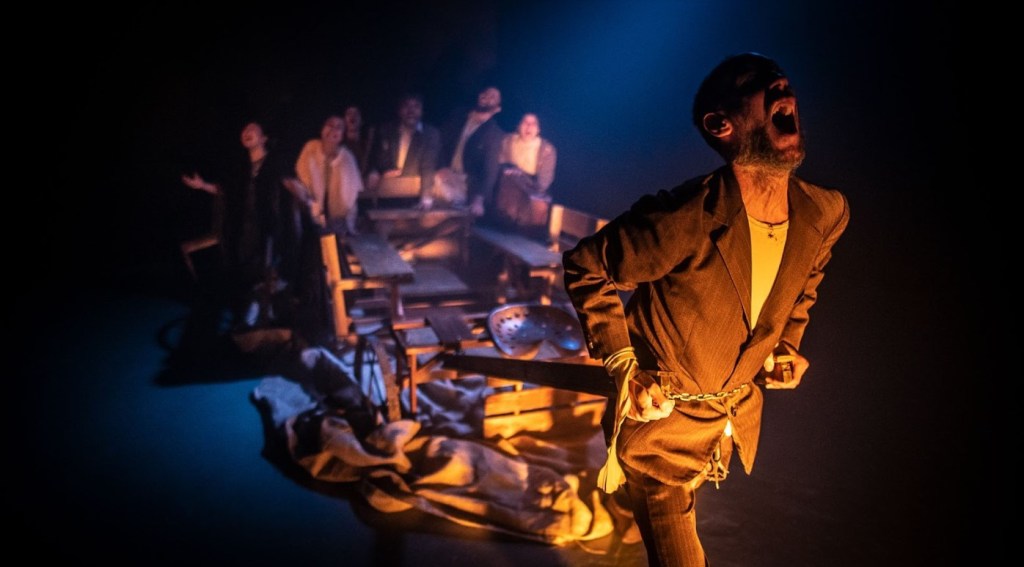 Dramaturgia y dirección Romina Oslé a partir de Mateo y Stéfano de Armando Discépolo. Siete personajes en una carreta encallada, una música concertista que aparece en la oscuridad y un clima, donde lo grotesco y lo onírico confluyen. Ante la imposibilidad de moverse, la carreta deviene en “casa”. Una casa que no tiene techo, que no protege de la intemperie, pero que amontona los cuerpos. Alrededor de la carreta, la “nada”. Los personajes son grotescos, pero se mueven en un mundo absurdo. El tiempo avanza, pero a partir de lo cíclico. Apareciendo la eternidad de lo absurdo y a su vez la muerte grotesca, de los vínculos, los sueños y los cuerpos. Actúan: Augusto Carrazana, Belén Amadío, Florencia Mair, Hernán Maldonado, Julieta Molina, Mariano García, Norma Tripodi y Petra Donn.