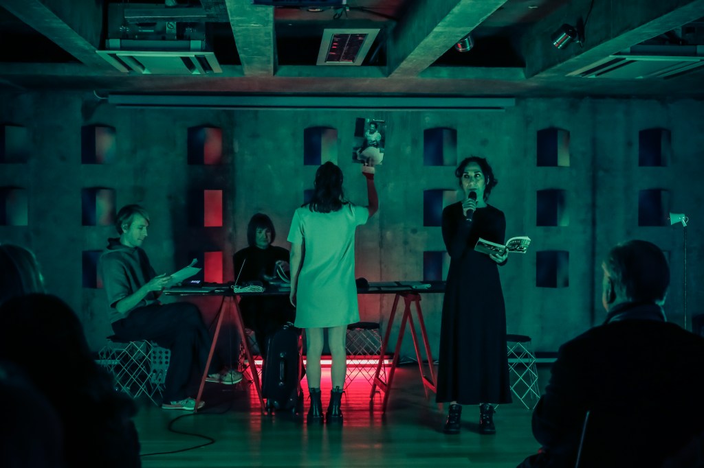 La puesta comienza como una entrevista para un podcast, cuyo conductor es interpretado por Dennis Smith. Este personaje, que parece conocer poco sobre la historia, pronuncia el apellido Wajszczuk de manera torpe, para luego rendirse y crear un juego con Ana, la entrevistada. Además, en algunos momentos, es él quien musicaliza y canta durante las transiciones entre escenas. La música es uno de los elementos principales que atrapan al espectador, ambientando las escenas de guerra con música electrónica y generando emociones en los momentos más tristes o dolorosos con tonos desgarradores.