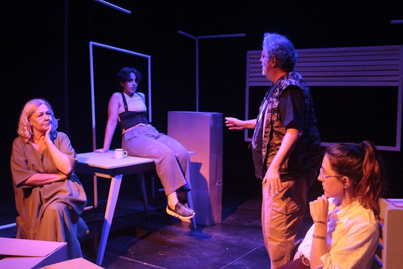 Los cuartos oscuros funciona como un símbolo polisémico. Es el cuarto de donde salió el resultado electoral que atormenta a estas tres mujeres, es el cuarto oscuro donde se autoexiliaron, y en el que la descendencia parece desdibujarse ante un mundo asolado por lo que ellas creen la barbarie. Es una polaroid del sentir actual de tres mujeres y sus modos de adaptarse a una violencia creciente y delirante que intenta introducirse en su frágil hogar. Una obra de Roxana Berco, con Lili Popovich, María Valiente, Pía Fonseca, Horacio Banega.