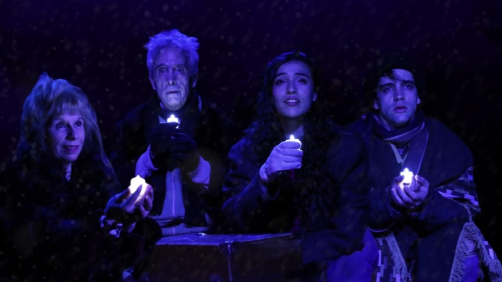 Arturo, Carolyn, Débora y Lindo integran una compañía de teatro de muy bajos recursos. Un empresario, Rolo Cepillo, al que nunca le vieron la cara, los lleva de gira sin cumplir las condiciones prometidas. Arturo, delegado del grupo, fue el contacto. Han quedado varados en el medio de la nada bajo una tormenta de nieve. “… ¿dónde estaremos?” No saben. Las ilusiones, el deseo y la potencia de los sueños; los sostiene. “Los actores un día comemos faisán y otro día comemos las plumas”, afirma Arturo. Hambre, frío, desolación. Realidad y representación… Y a pesar de todo: el amor. Milagros subrepticios y Meyerhold en un salto de tiempo, serán decisivos. Una obra de Gabriela Romeo, con dirección de Daniel Marcove y actuaciones de Hugo Cosiansi, Gabriela Romeo, Toto Salinas, Camila Truyol.