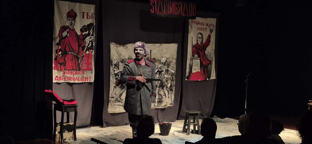 Una nueva creación de Internacionales Teatro Ensamble, compañía argentina que, desde su fundación, se dedica a la investigación escénica y a la construcción de un teatro político, épico y profundamente latinoamericano. Escrita por Manuel Santos Iñurrieta, quien dirige junto a Diego Maroevic, la pieza está ambientada en la batalla de Stalingrado durante la Segunda Guerra Mundial y nos presenta a un soldado soviético gravemente herido que recurre a la comedia y la poesía como salvavidas ante el absurdo de la guerra. En la víspera de la gran contraofensiva soviética —que cambiaría el rumbo del conflicto cercando a las tropas alemanas—, el protagonista reflexiona sobre las utopías sociales, el horror del fascismo y su alarmante resurgimiento a 80 años del triunfo sobre el nazismo. La obra cuenta con la participación especial del sociólogo y politólogo Atilio Borón, quien aporta su voz y pensamiento como parte del universo escénico, reforzando el vínculo entre teatro, historia y pensamiento crítico.