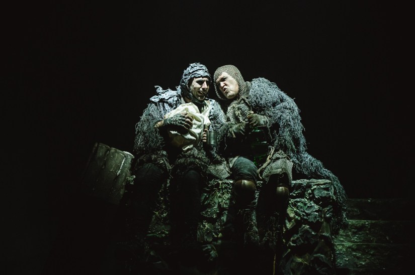 –Rodrigo Spagnuolo: Creo que el teatro uruguayo actual vive un momento especialmente saludable: amplio en propuestas, con riesgo e independiente. Y tengo la noción de que la originalidad es un rasgo distintivo en un núcleo muy amplio. Lo cual es coherente con su historia de resistencia, de reivindicación del teatro como espacio de libertad, de conquista expresiva y política. En esa línea, el aporte a las reglas del lenguaje teatral, tiene un valor en sí mismo, al ensanchar la libertad misma del teatro y su público. Y con esa visión Los sepultureros es coherente. De ahí incluso la «insolencia» deliberada a la que hace referencia el título, la utilización de lo antiguo, de lo aparentemente «muerto» para hacer un teatro vivo, que habla del presente. Y de ahí también lo ecléctico, tan rioplatense, que permite atravesar con naturalidad a Shakespeare con el grotesco criollo, la Commedia dell’Arte o la técnica del bufón.